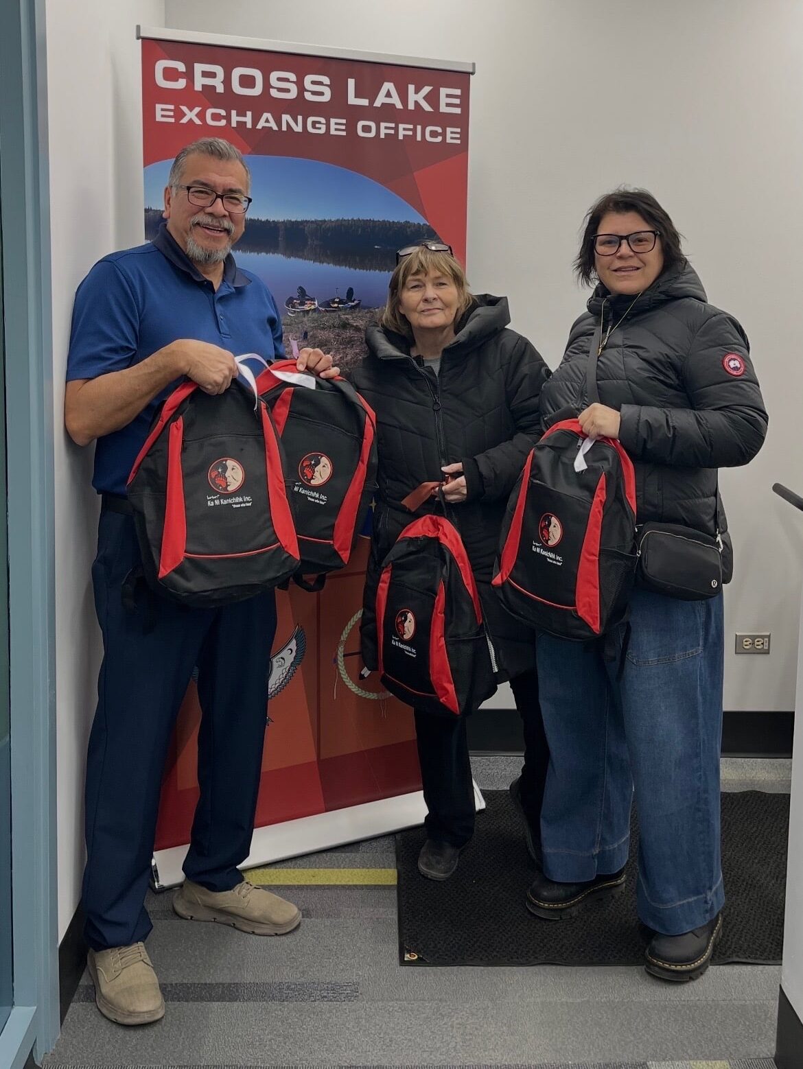 Ka Ni Kanichihk also organized the collection of clothing, games, and essential items to help ensure families were as comfortable as possible during their stay. On February 23rd, 2026, Ka Ni Kanichihk staff delivered 400 backpacks to the children of Cross Lake filled with school supplies, books, and activities.