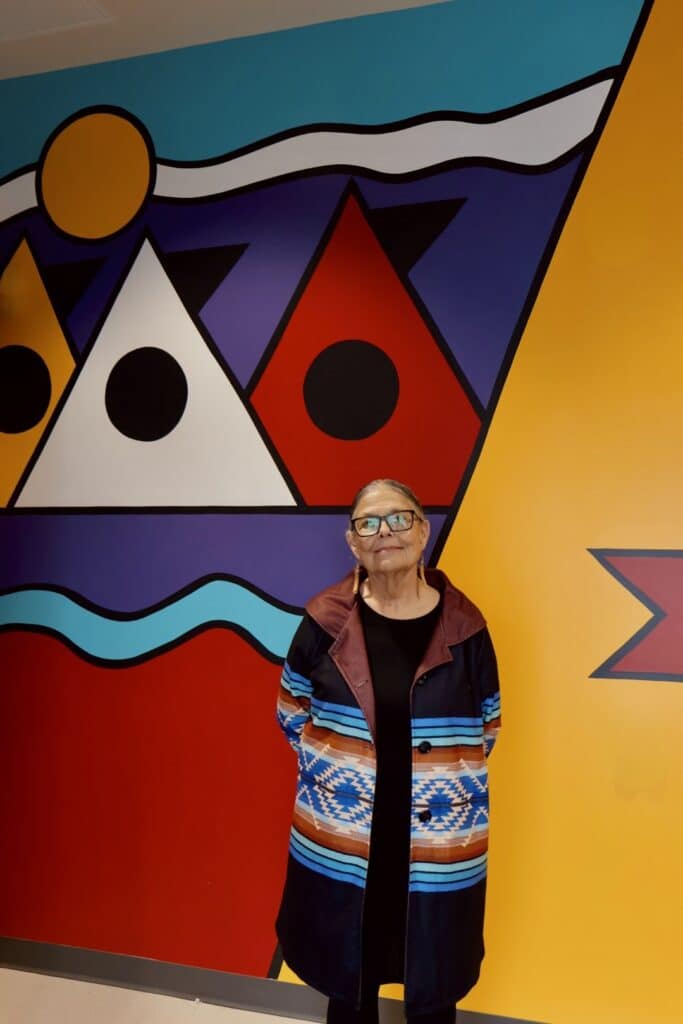 Each day began with the lighting of a Sacred Fire, while Tuesday featured an unveiling of the new mural located in the front main vestibule entrance memorializing the original design which was on the front of our original building. Lita Fontaine is the Indigenous artist cited with the creation of the original mural, the design containing four colored tipis, a sun, and the land and water which represents community and our relationship with the elements. Lita returned to Ka Ni Kanichihk to create both the updated design on the interior entrance, and a new mural in the daycare entrance, featuring a reimagined modern version of the original mural. Lita collaborated with Synonym Arts Consultation, and the painters were Joseph Palaphie, Nadia Crossman and Dee Barsy.