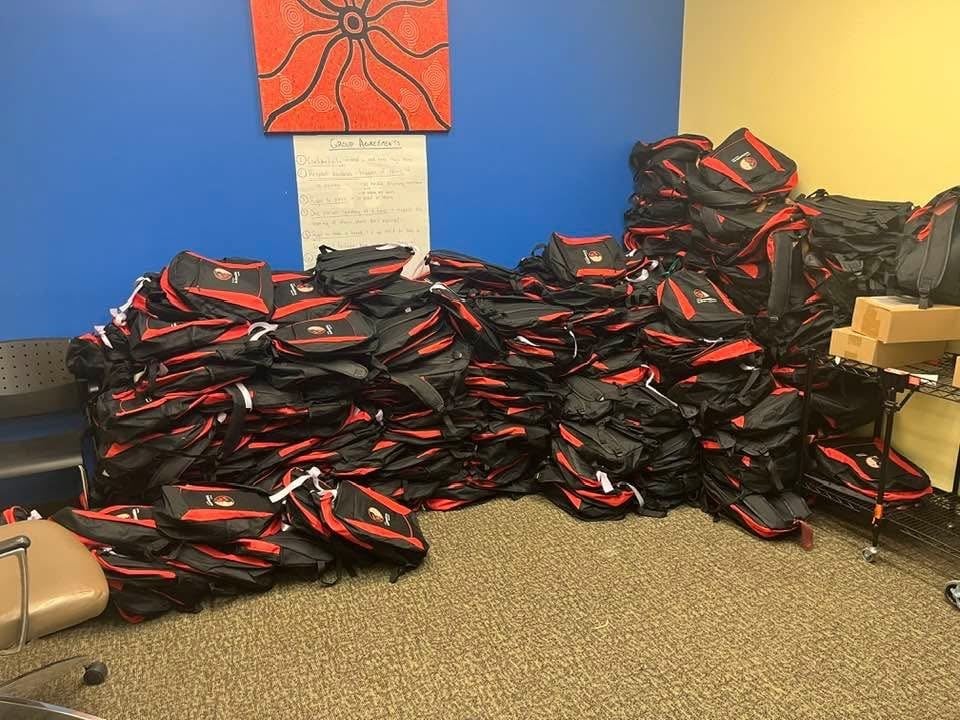 Ka Ni Kanichihk also organized the collection of clothing, games, and essential items to help ensure families were as comfortable as possible during their stay. On February 23rd, 2026, Ka Ni Kanichihk staff delivered 400 backpacks to the children of Cross Lake filled with school supplies, books, and activities.